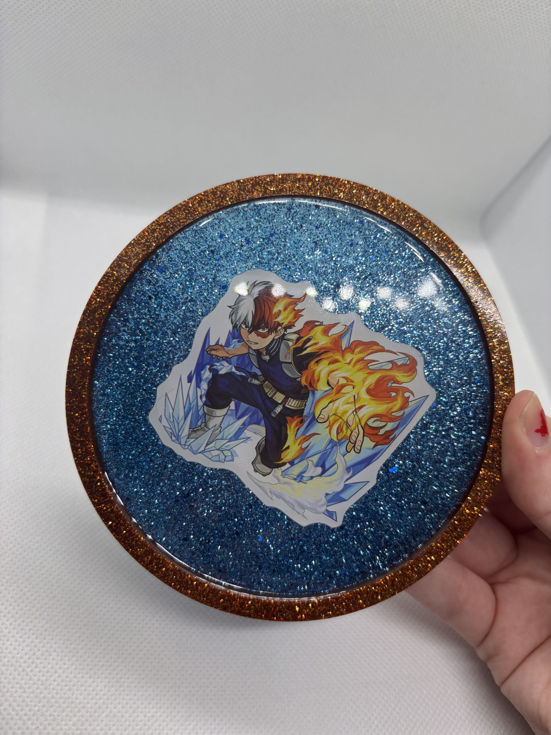 Sous verre ou vide poche "Shoto Todoroki" dans My hero academia. Décoration ou utilisation.